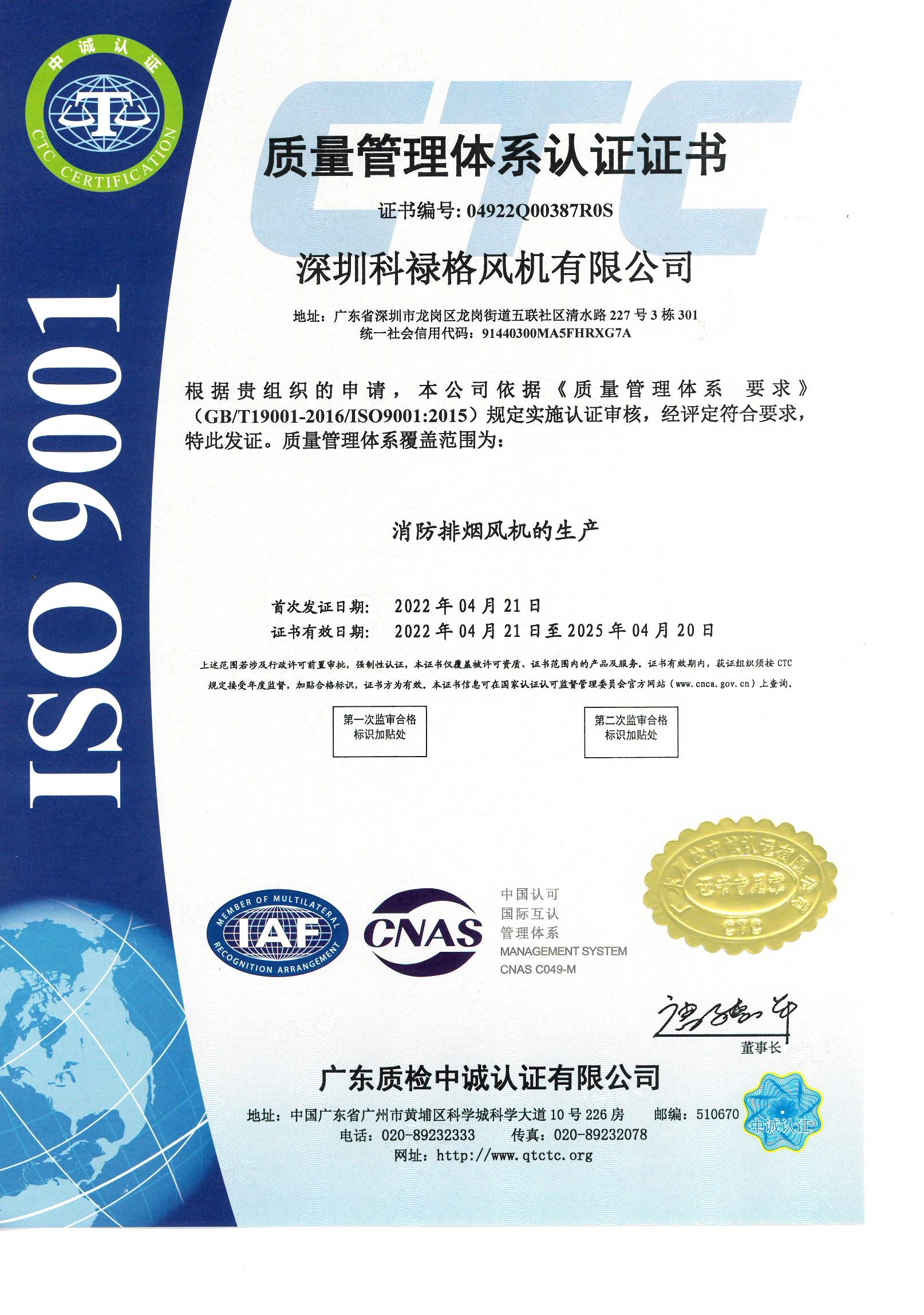 質(zhì)量管理體系認(rèn)證證書