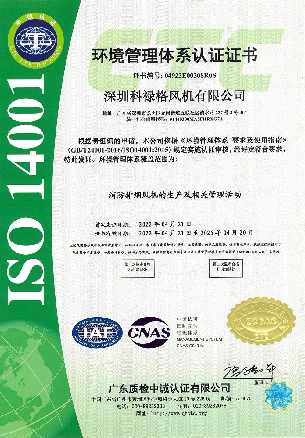 環(huán)境管理體系認(rèn)證證書